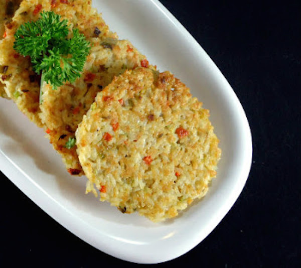 Estas hamburguesas de arroz me parecen un buen modo de aprovechar el arroz que nos haya sobrado de otra comida, incluso un arroz con verduras. Para hacer unas 8 hamburguesas necesitamos: 2 tazas de arroz ya cocido, 2 huevos batidos, 1 taza de migas de pan, y una mezcla de 1 zanahoria, 1 rama de apio y media cebolla rehogados. Mezcláis todos los ingrendientes, condimentáis con sal y pimienta y hierbas frescas si os apetece, formas las hamburguesas con las manos mojadas, compactando bien la mezcla, y las vais cocinando en la sartén bien caliente con un poco de aceite, unos minutos de cada lado, hasta que se doren.