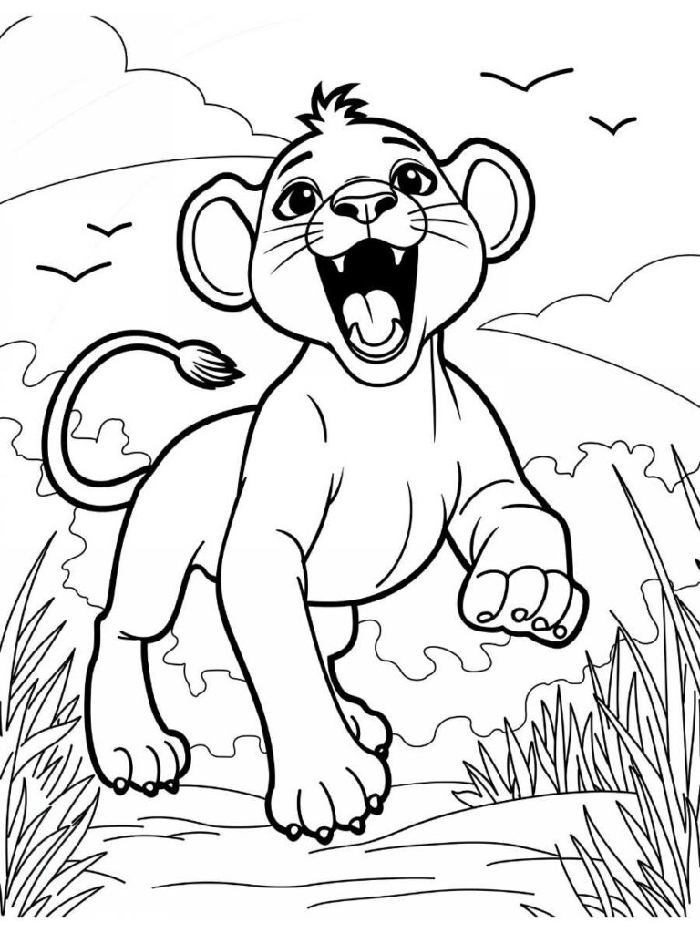 Dibujo de Simba, el Rey León, para colorear. Perfecto para los fans de Disney, ideal para niños que aman esta película clásica. ¡Descárgalo gratis!