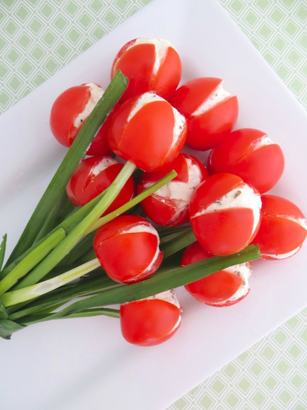 Estos tulipanes de tomate se pueden rellenar de varias maneras, lo más importante es ver cómo cortar los tomates y armar la flor… ¡el resto es pura fantasía! ¿quieres ver algunas ideas de relleno?