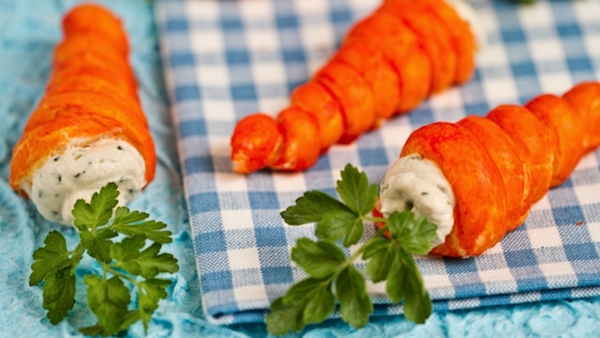 En otra ocasión os propusimos estas divertidas zanahorias de hojaldre rellenas, que os explicamos paso a paso. En esa oportunidad os sugerimos un relleno de atún, pero para aprovechar los nutrientes de la zanahoria podemos optar por una mayonesa de zanahoria.